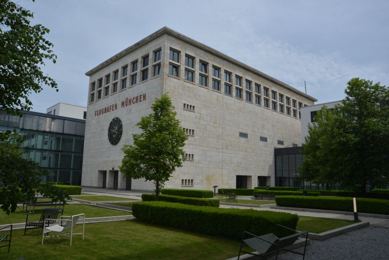 Gleich darauf fährt er auf das Bavariafilmgelände in Geiselgasteig, wendet jedoch direkt durch das Eingangstor, um Mona am Flughafen Riem abzuholen. Der Tower und die Wappenhalle sind heute die einzigen Relikte vom alten Flughafen Riem ( ab 16:25 )