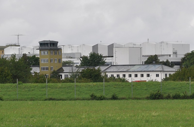 Der ehemalige Tower durch den Zaun betrachtet. Heute noch Bundeswehr-Gelände und nicht öffentlich zugänglich. Etwa dort, wo ein rotes Fahrzeug steht, fand der Empfang der Königin durch die angetretenen Würdenträger statt