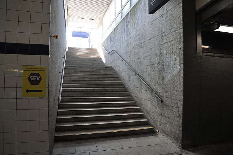 Claire steigt mit ihrer Haushälterin bereits in Pasing aus dem Nachtzug; bei 40:54 kommen die beiden die Treppe vom damaligen Gleis 1 herunter.