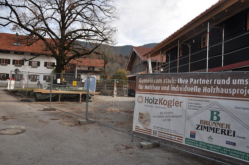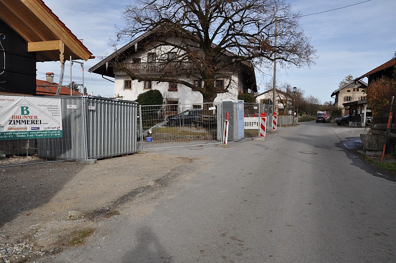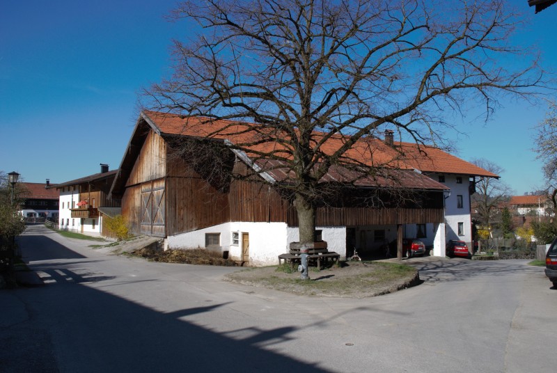 Das Maibaumfest mit einem frisch restaurierten Karussell und einem frisch gekürzten Maibaum findet im Sträßlein “Oberdorf” in Samerberg / Grainbach statt. (Foto von 2006) 2025 präsentiert sich der Platz leider als Baustelle, das Anwesen Oberdorf 16 wurde zu einem Wohngebäude umgebaut.