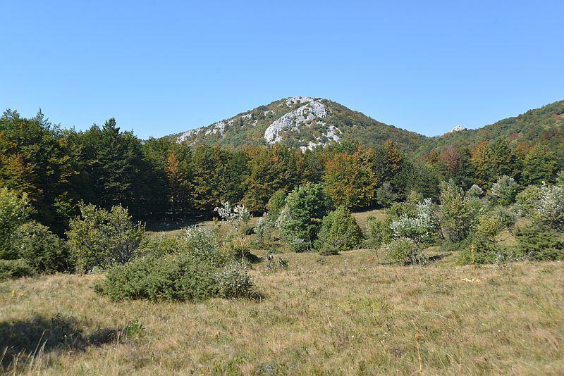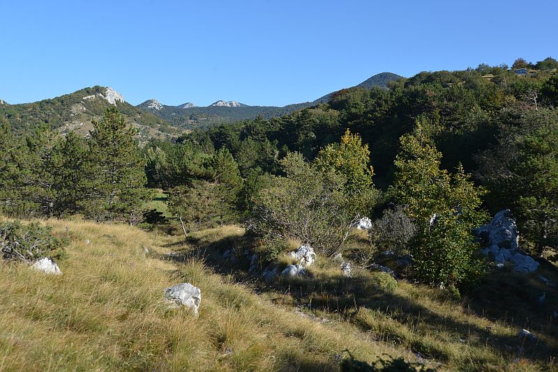Rechts von den im Hintergrund sichtbaren Felsen zieht sich ein kleines Nebental in die Berge; hier war z.B. der (künstliche) Höhleneingang in „Winnetou II“……