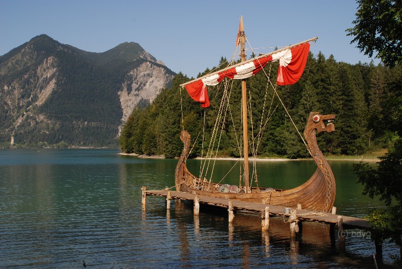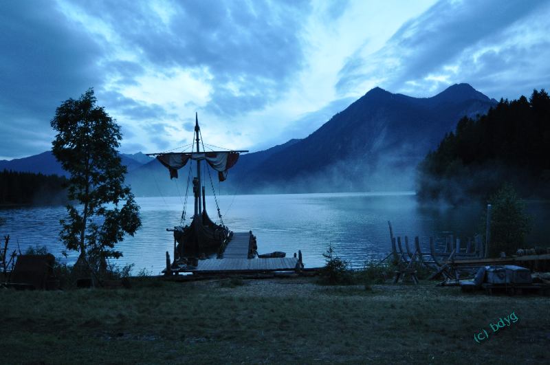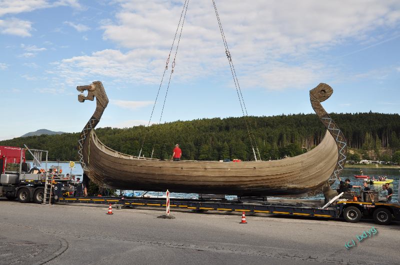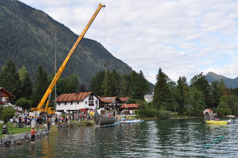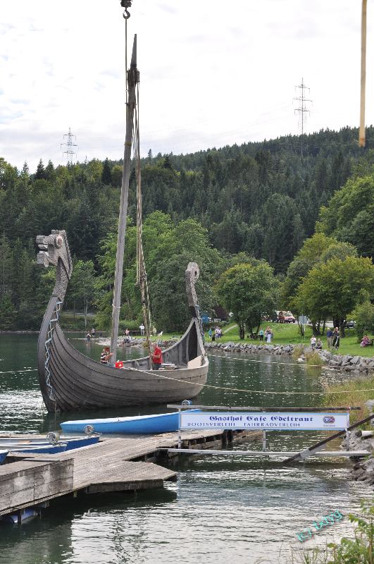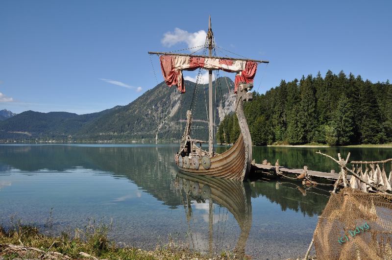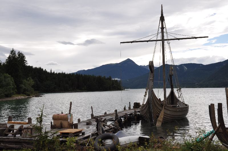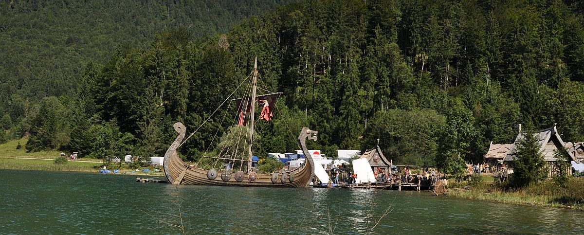 Es sind für den ersten Wickie-Film 2 Nachbauten entstanden: Ein hochseetüchtiges Boot, das in Malta zum Einsatz kam, und eine “Flachwasserversion”, die wir hier am Walchensee gesehen haben.