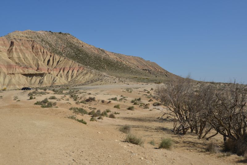 Für den Autofahrer ist das der etwa rechteckige 20 km lange Rundkurs, eine Zufahrt von Norden und die Hauptzufahrt von Arguedas / Besucherzentrum.