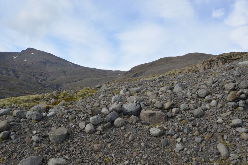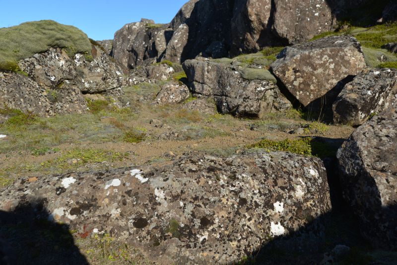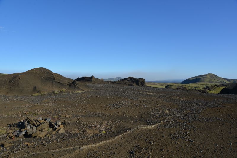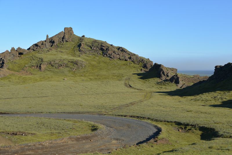 In der Kurve am Flugfeld zweigt neben der Strasse zum Besucherzentrum auch eine hoppelige Schotterpiste von der Ringstrasse ab; sie endet nach 2 km auf einem Parkplatz. Gleich hinter dem Zaun entstand obige Szene. Man kann den Weg am Hang noch ein kleines Stück entlangkraxeln, allerdings ist hier die Steinschlaggefahr beträchtlich.