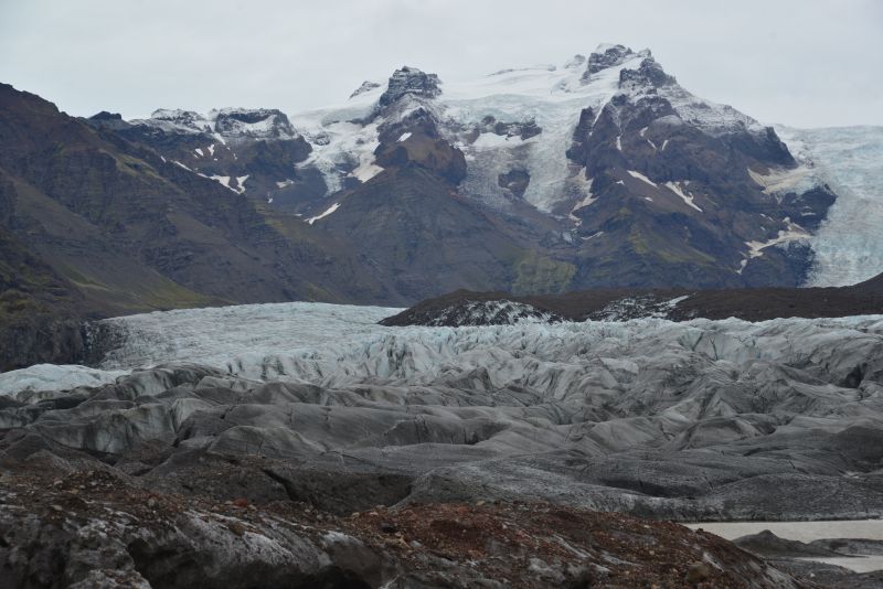 ein Schotterweg, der aber im Gegensatz zu seinem 1 km entfernten Kollegen mit feinem und gewalztem Sand bedeckt ist, und auf einem großen Parkplatz endet. Dort ist eine Schranke, die nur Fußgänger durchläßt, man erreicht auf bequemen Fahrweg nach 500m den Gletscher.