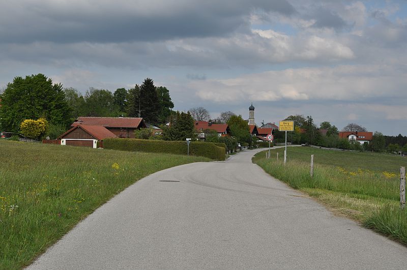 …. das Ortsschild und je nach Beginn und Länge des Gespräches teils durch den Weiler hindurch….