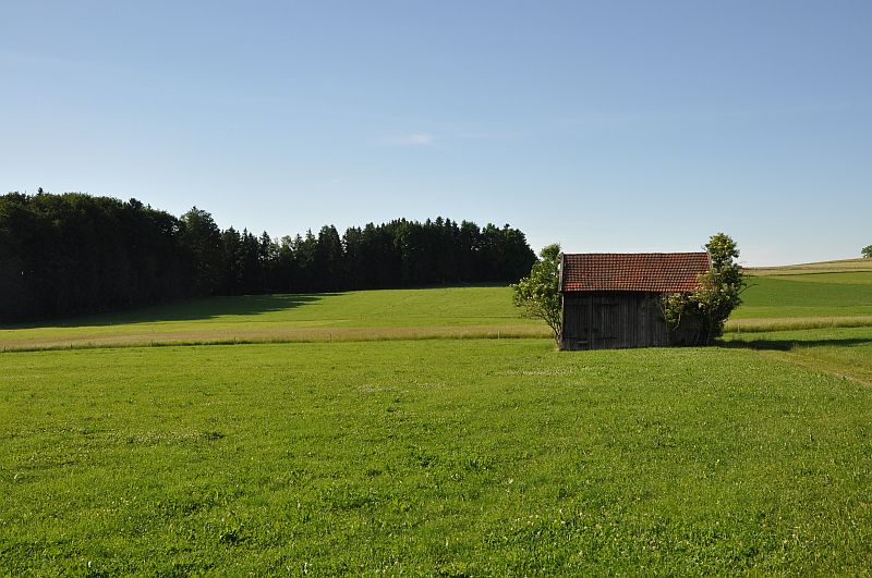 026 — 04:35: Von hier schweift der Blick hinüber zum “bösen” Nachbarn; das ist in Wirklichkeit der Weiler Blöcken. Der Hof des Nachbarn, auf dem gedreht wurde, steht jedoch zwischen Münsing und Degerndorf.