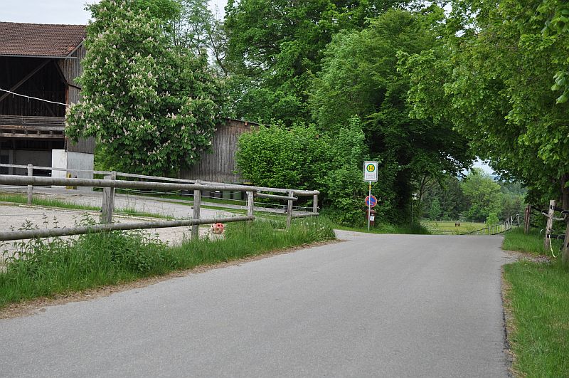 In Berg wird rechts abgebogen, man passiert die kleine Allee & die Kreuzung mit dem Abzweig nach Eurasburg, und nach einem kurzen Stück beginnt die nächste Gesprächsrunde – in des Worts wahrsten Sinne… Eine Gesprächsrunde in entgegengesetzter Richtung kann man z. B. in Folge 138 oder 142 beobachten.