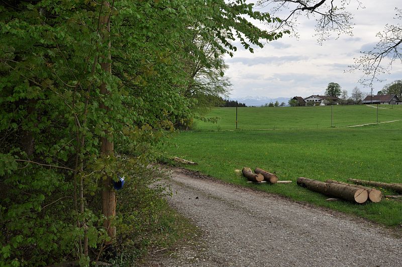 Geht man an der Kreuzung in nördlicher Richtung auf dem Schotterweg weiter (für Fahrzeuge gesperrt) kommt man zu Hansis Joggingstrecke aus Folge 106.