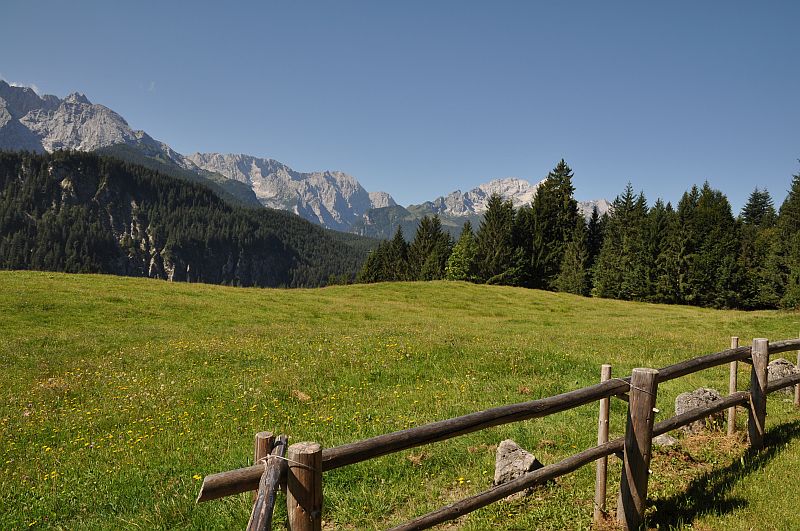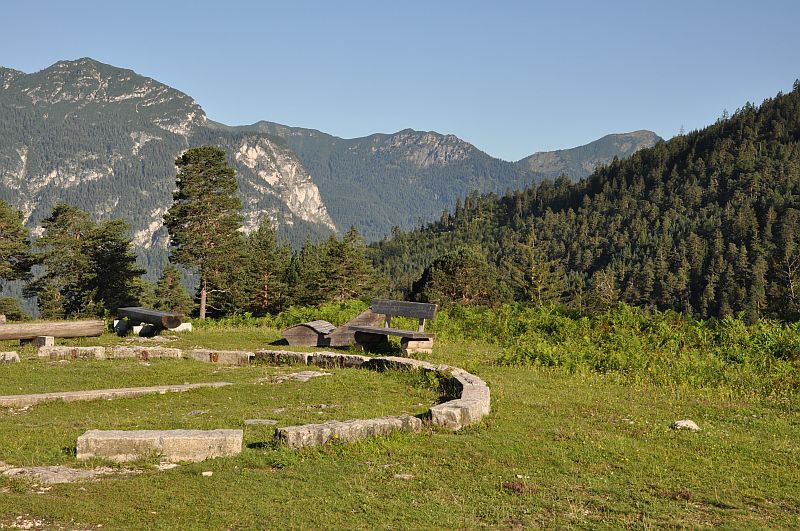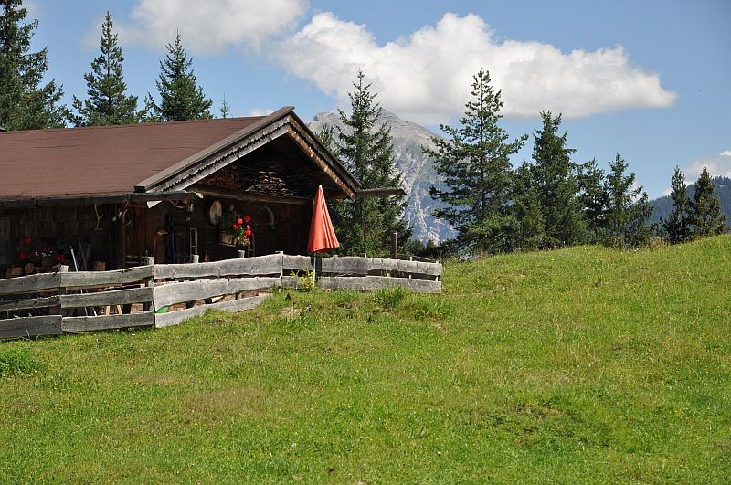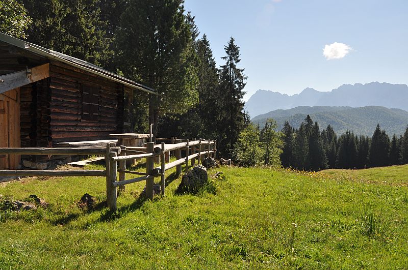 Die Alm liegt 200m nordwestlich vom Berggasthof Wildensee, und ist von eingezäunten Wiesen umgeben,