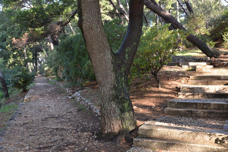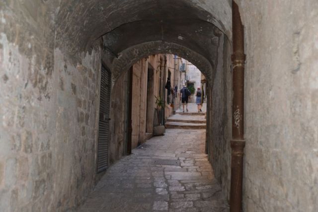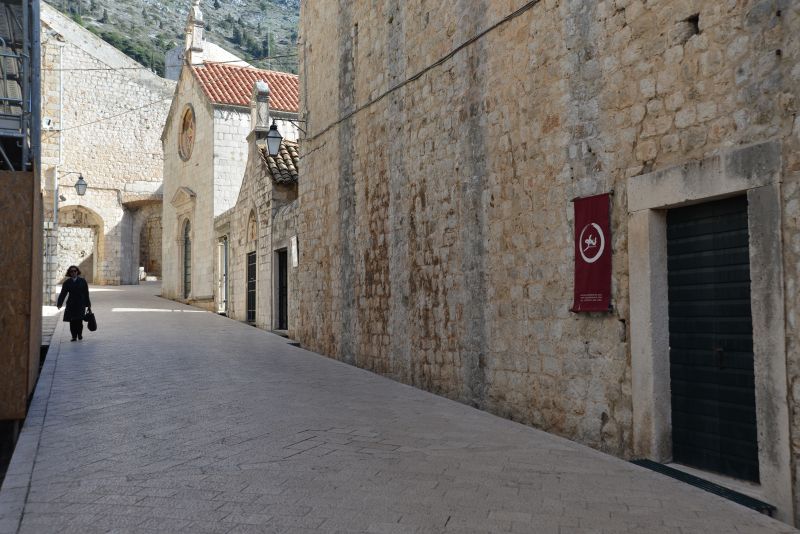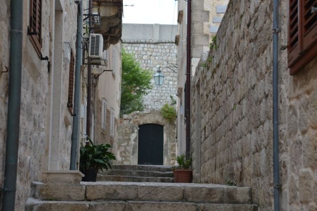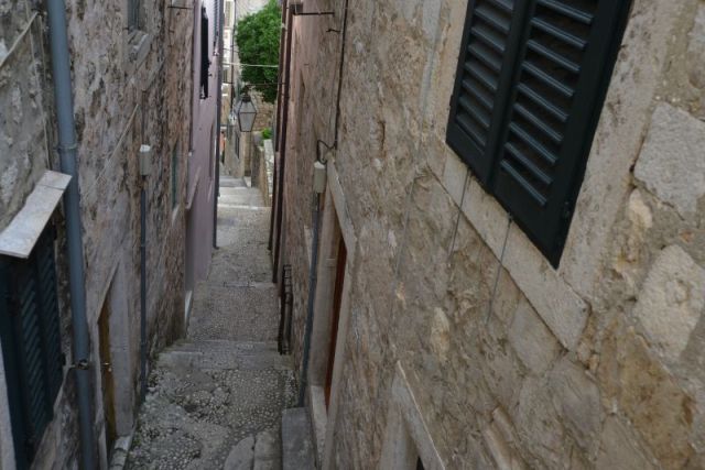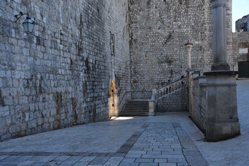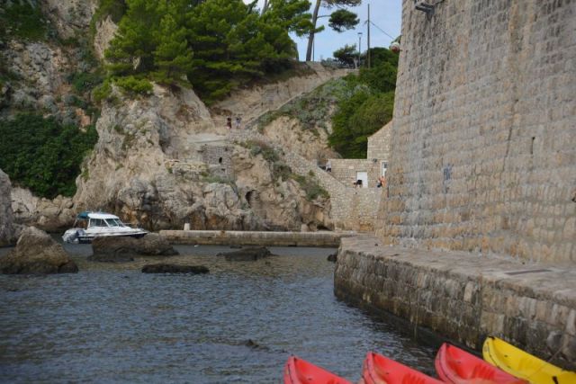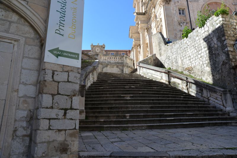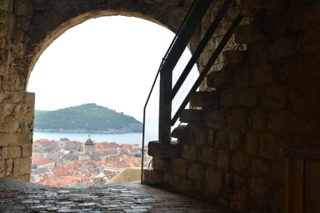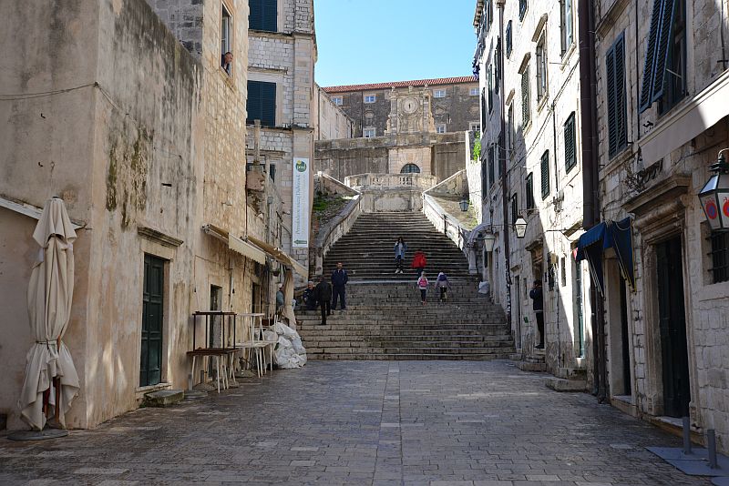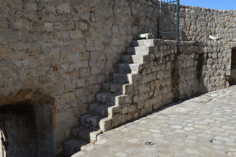 Im Bild gerade noch oben angeschnitten ist die Treppe, die zum Lovrijenac hinaufführt.