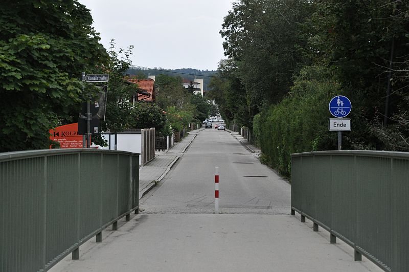 Am Ende der Strasse führt eine Fußgängerbrücke über den Loisach-Isar-Kanal. Hier entdecken H&S in Episode 102 den weinenden Pfarrer.