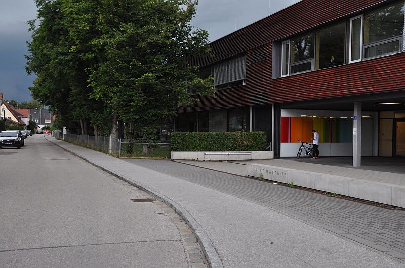 Hier an der Thomastraße / Seminarplatz ist der Eingang zum Sankt Matthias Gymnasium, vor dem H&S in Folge 021 ab 33:10 auf eine Schülerin warten.