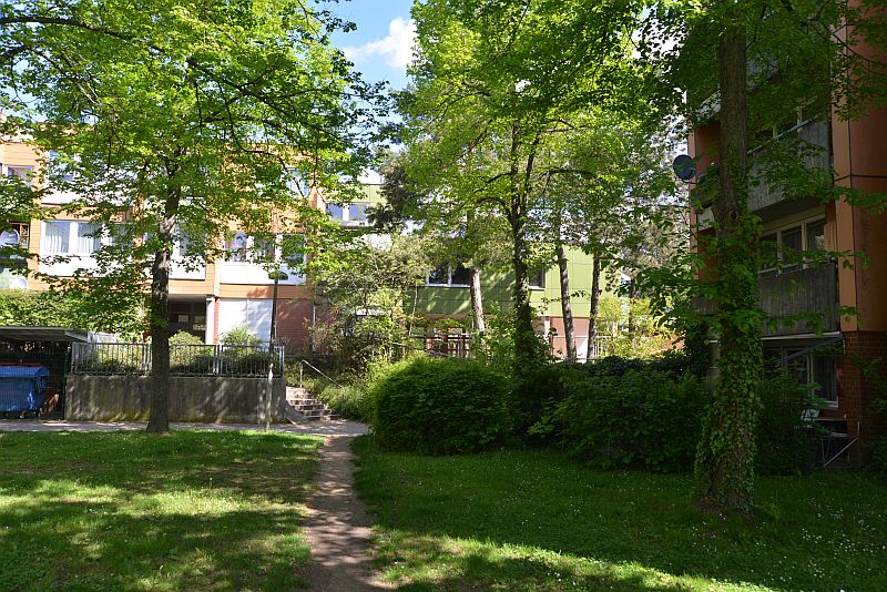 Gegenüber der Einmündung der Erikastrasse steht das Gebäude Nr. 7 – 13 vom Anfang der Folge 023 “Reif für die Anstalt”, vor dem der Hausmeister eine vermeintliche Zeitungsdiebin, ausgerechnet Girwidz´ Tochter – festhält. Und die entdeckt im angrenzenden Architekturbüro das Mordopfer