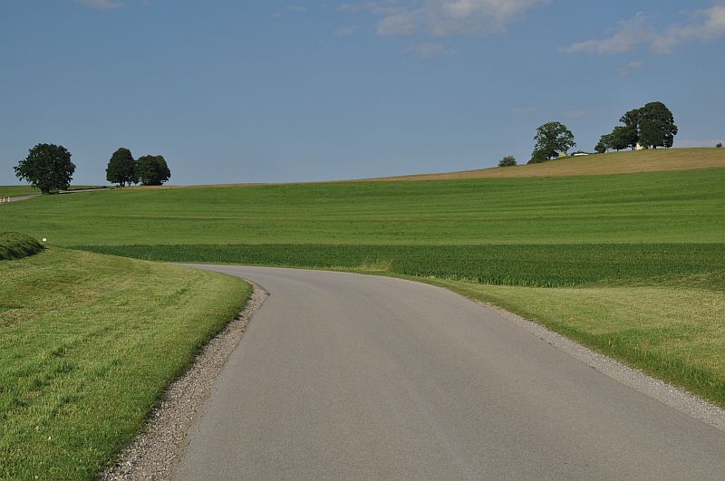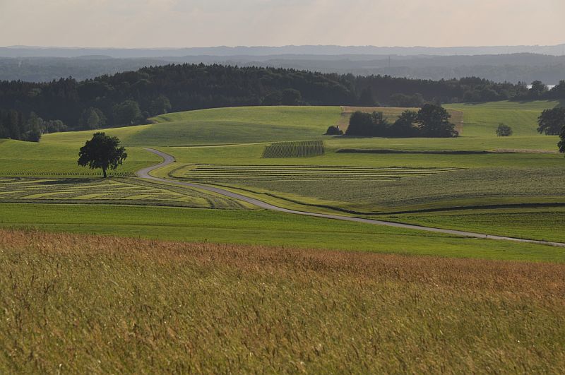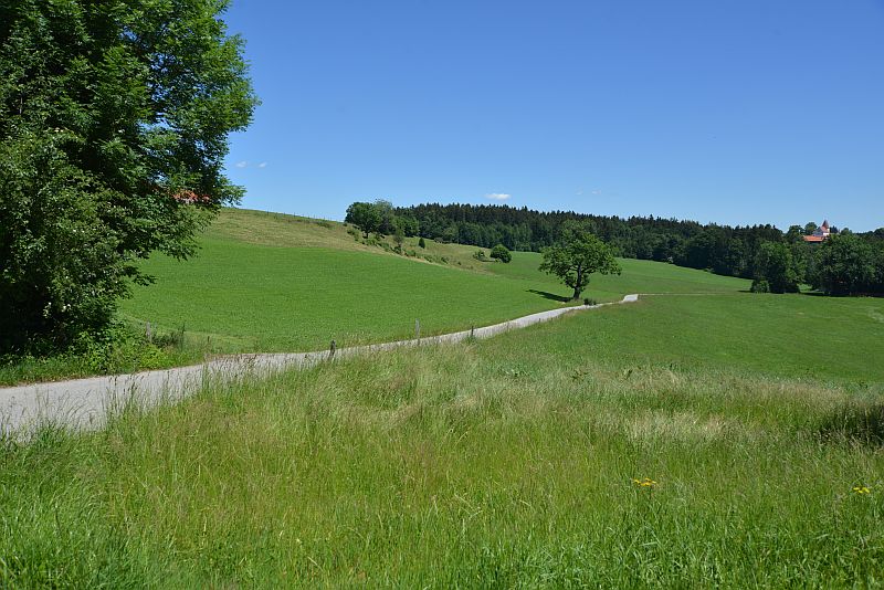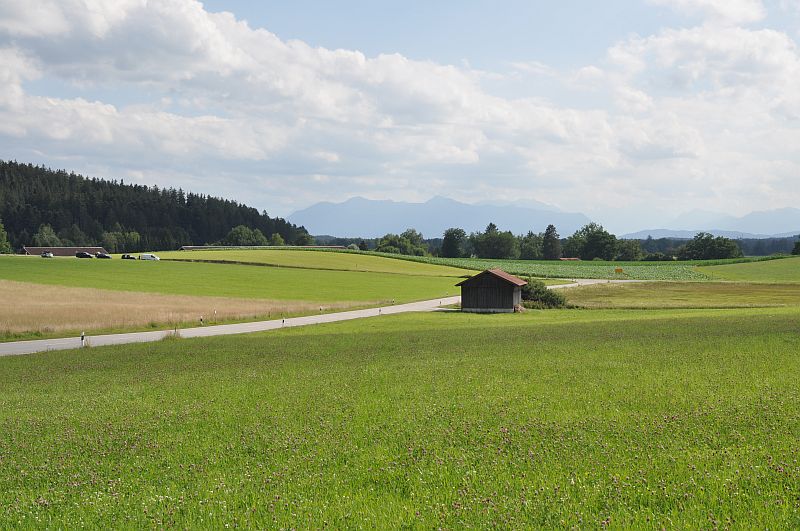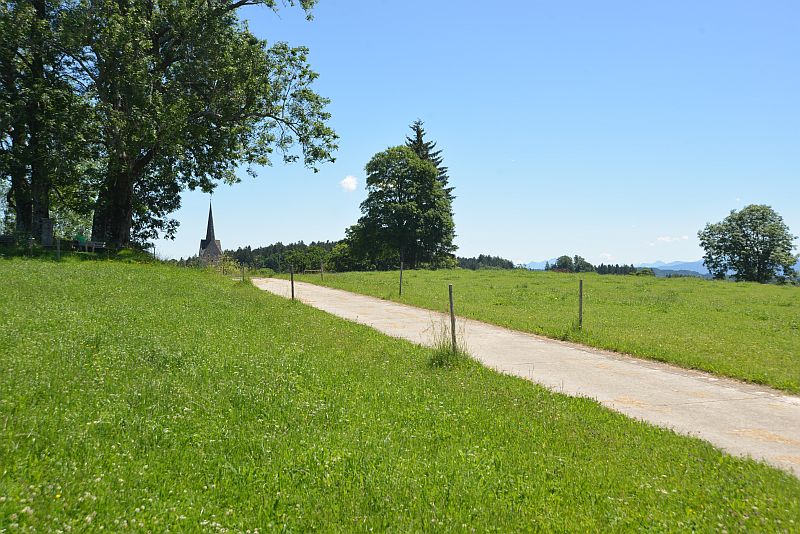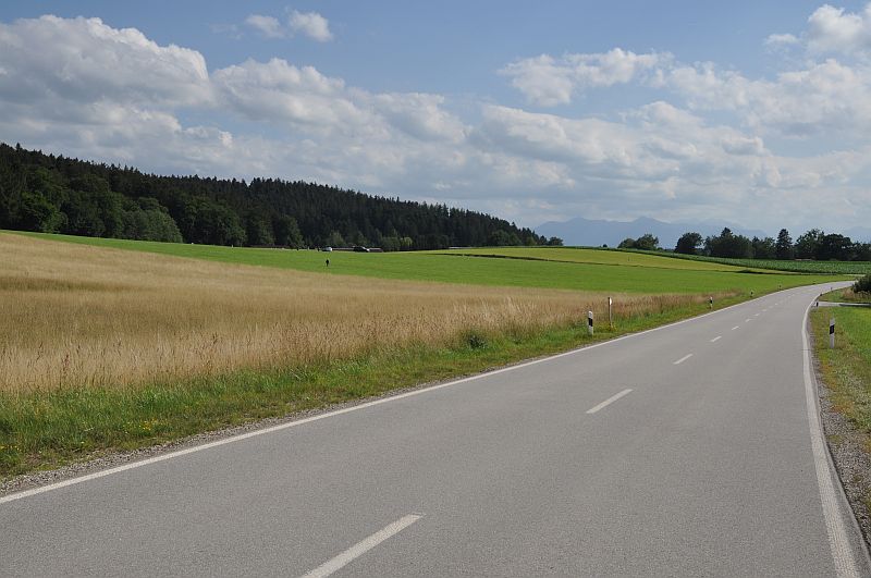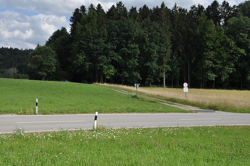 Nachdem man auch diese Verfolger losgeworden war, stellte Jo den auffallenden Mercedes ab, und die beiden setzten ihre Flucht zu Fuß fort. Unterwegs sind sie auf der Verbindungsstraße zwischen Degerndorf und der Staatsstrasse 2065 am Fuße der Maria-Dank-Kapelle. 1:02:50 Rechts oben sieht man ein kleines Fitzelchen vom Starnberger See zwischen den Bäumen