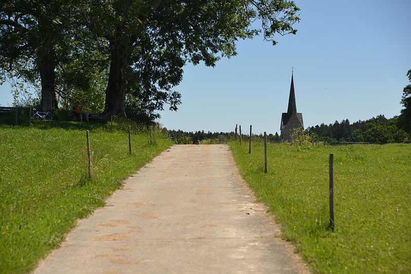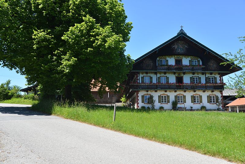 Der Heustadel, aus dem die verhängnisvolle Kuh mit dem Kopfschmuck herauskam, ist kurz vor meinem Besuch durch einen Neubau an derselben Stelle ersetzt worden. Der Wegweiser, den die Kuh elegant verdreht, war natürlich ein reines Filmrequisit.