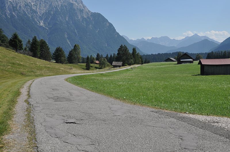 Wo Zollamt draufsteht, war auch Zollamt drin. Bis zum Inkrafttreten des Schengen-Abkommens wurden hier in Vorderriß die Papiere kontrolliert. Wobei die Straße zum Großen Ahornboden / Engalm in Österreich eine 25km lange und landschaftlich grandiose Sackgasse ist.