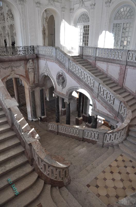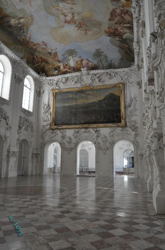 Zu sehen bekommen wir den Park, den Marmorhof, das Zweite Vorzimmer (“Ochsenaugensaal”), sowie den Spiegelsaal.