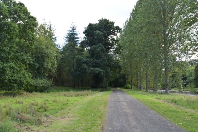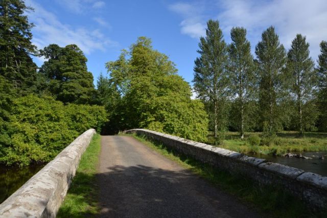 Am Haupteingang geht ein Weg direkt zum (ehemaligen) Schloß, hier hängt ein unmißverständliches “Strictly no entry” am geschlossenen Tor. Der andere Weg ist eine geteerte Fahrstraße zum Wirtschaftshof, dort habe ich beim “Estate Office” nachgefragt, ob es erlaubt ist, zumindest an der weit im Westen des Areals gelegenen Brücke fotografieren zu dürfen.